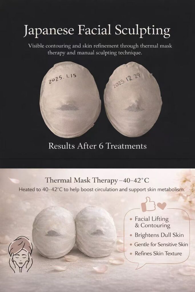 This professional facial therapy is rooted in traditional Japanese techniques and certified by the Association of Japanese Estheticians and Beauty Therapists. The treatment focuses on facial muscles, fascia, soft tissue, and lymphatic pathways, using precise and gentle manual techniques taught through official Japanese training.